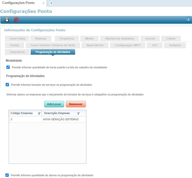 Combobox para seleção das empresas que deverão lançar tomador de serviços na programação de atividades: