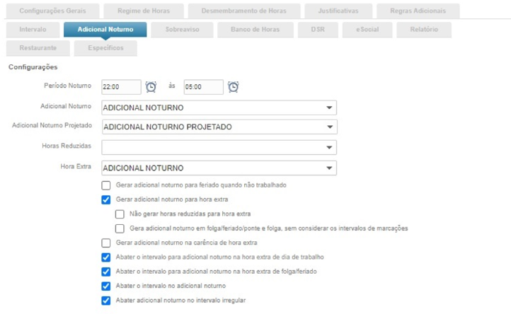 Novo campo na guia Adicional Noturno do perfil de frequência: