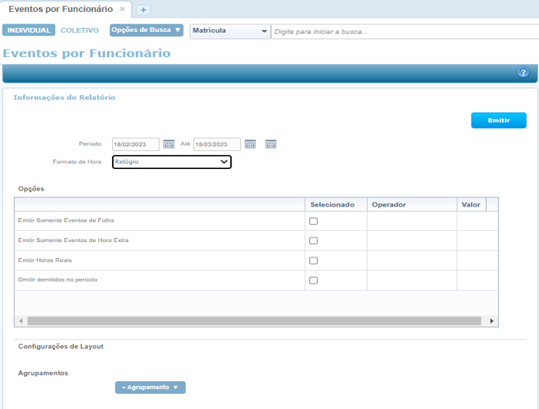 Nova opção no chamador do relatório Eventos por Funcionário:
