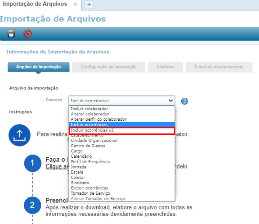 Foi desenvolvido novos conceitos na importação de arquivos, para que os layouts anteriormente já disponibilizados não sejam alterados. Incluir o campo empresa nos novos layouts de incluir e excluir ocorrência e alterar perfil do colaborador.
