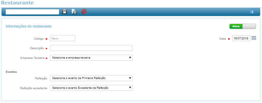 Esta funcionalidade será utilizada para cadastrar Restaurantes e determinar os eventos das refeições.