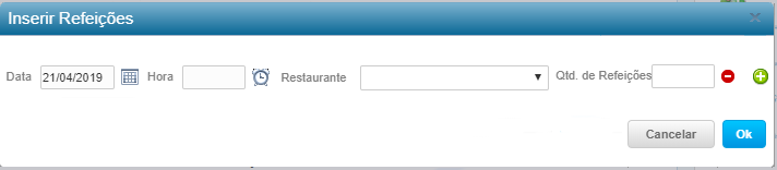 Poderá realizar lançamentos manuais de refeição.
